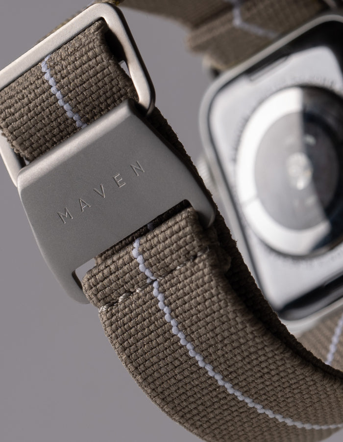 Introducing the Apple Watch Parachute Strap by MAVEN: Elevate your wristwear with the latest in tech-meets-style innovation. Crafted from high-quality elastic parachute strap material, this new accessory is designed for those who demand comfort, durability, and a touch of adventure in their everyday lives. The parachute strap is elastic, breathable and fully adjustable, perfect for everyday wear.