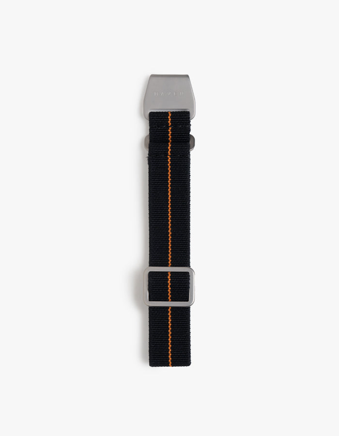 The parachute-style strap is representative of a time in watch history, properly known as The Marine Nationale Parachute Elastic Strap, has an interesting history that dates back to the 1960s and 1970s. The parachute strap is elastic, breathable and fully adjustable, perfect for everyday wear.