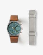 • Sleekly packed with a leather watch and an extra quick-release parachute strap, this bundle makes style changes simple, fast, and tool-free.