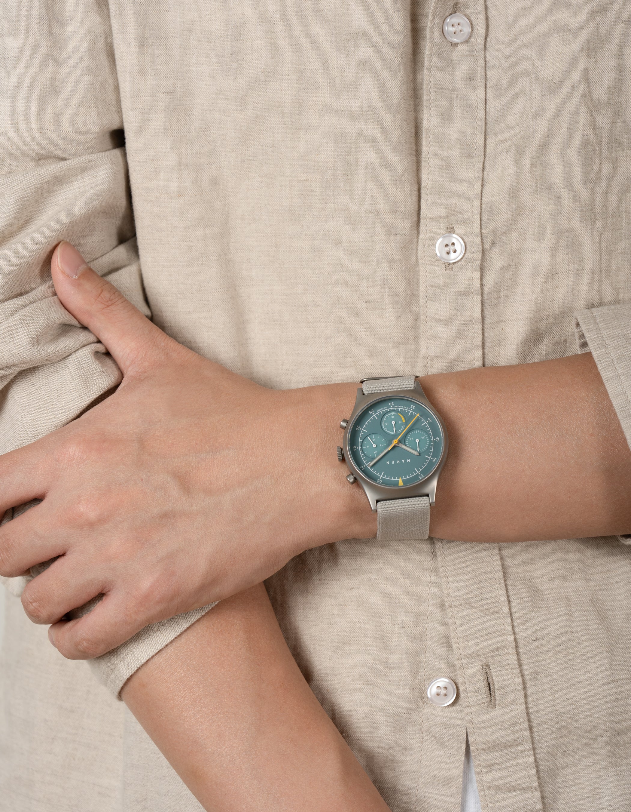 A symbol of MAVEN’s minimalist silhouette, the MUS Solar Chrono follows similar design cues to the MUS collection but with some upgrades to its appearance and an advanced solar-powered movement. Powered by Japanese solar movement, the watch relies on exposure to direct light, whether it is sunlight on the beach or under your desk lamp. Once fully charged, the power storage can last up to 5 months, and the power reserve indicator is easily visible.