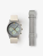 • Sleekly packed with a leather watch and an extra quick-release parachute strap, this bundle makes style changes simple, fast, and tool-free.
