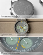 Featuring a built-in stopwatch, the MUS Solar Chrono can measure elapsed time up to 30 minutes with precision. Perfect for timing activities and tracking performance, this chronograph function adds an extra layer of functionality to your solar-powered watch.