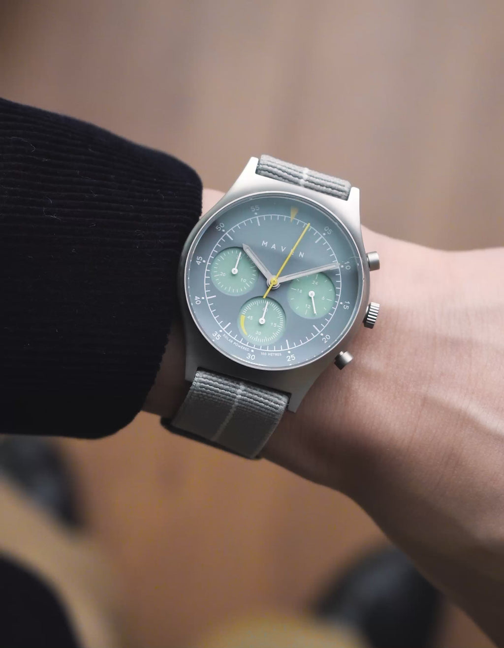 The MUS Solar Chrono embodies MAVEN's minimalist silhouette, blending timeless style with uncompromising quality. Inspired by a deep study of watch movements, we landed on a solar chronograph movement developed by Seiko Epson, which works by converting light energy into electronic energy. This approach showcases our commitment to advancing watchmaking technology while maintaining a classic aesthetic.
