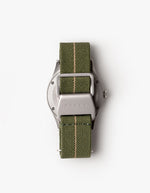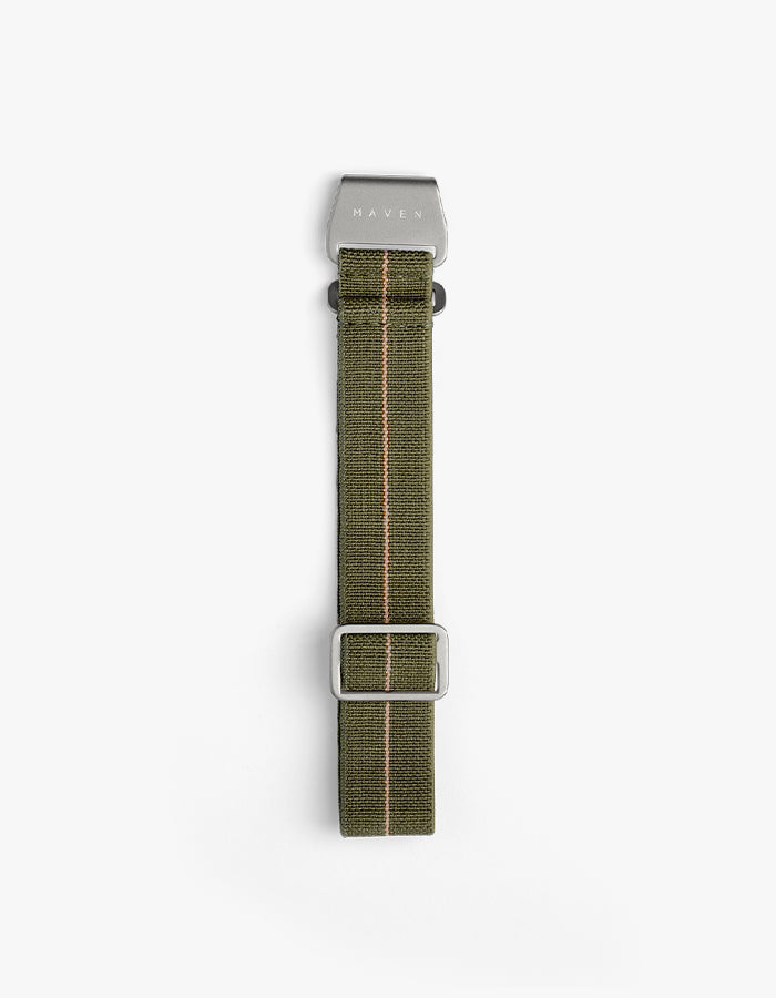 The parachute-style strap is representative of a time in watch history, properly known as The Marine Nationale Parachute Elastic Strap, has an interesting history that dates back to the 1960s and 1970s. The parachute strap is elastic, breathable and fully adjustable, perfect for everyday wear.